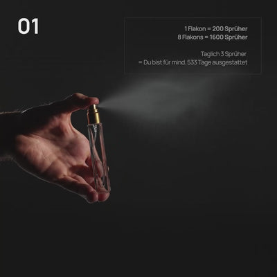 8 Flakons × 200 Sprüher = 1.600 Sprühstöße